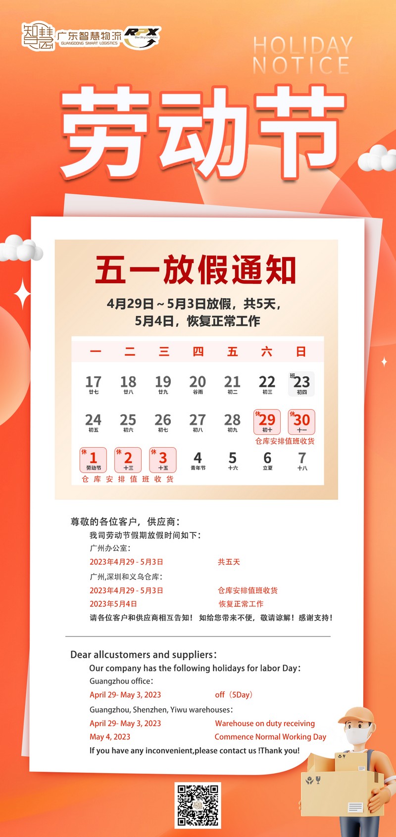 廣東智慧物流2023年(nián)五一勞動節放(fàng)假安排