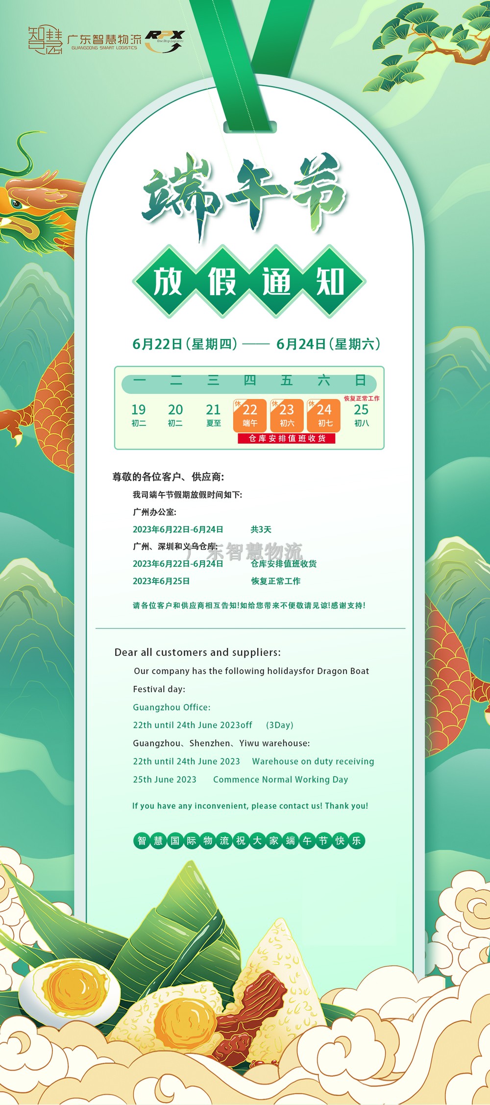 廣東智慧物流2023年(nián)端午節放(fàng)假安排(印尼物流馬來(lái)|新加坡|菲律賓)