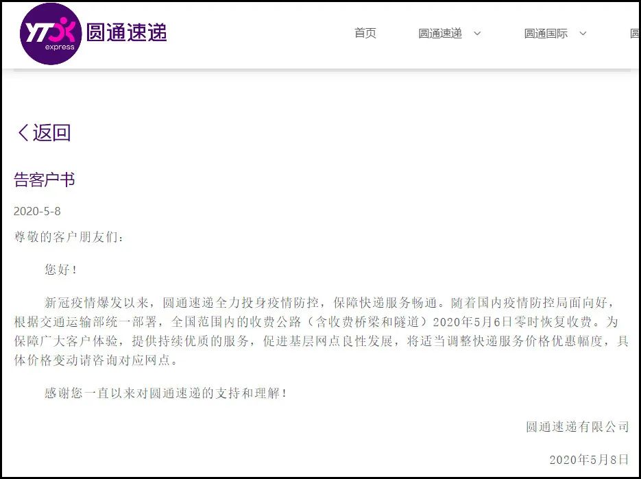 9日(rì),韻達速遞也發布了告客戶書(shū),其稱将根據市場情況,适當調整高速免費期間推行的優惠政策,詳情可(kě)咨詢當地網點。