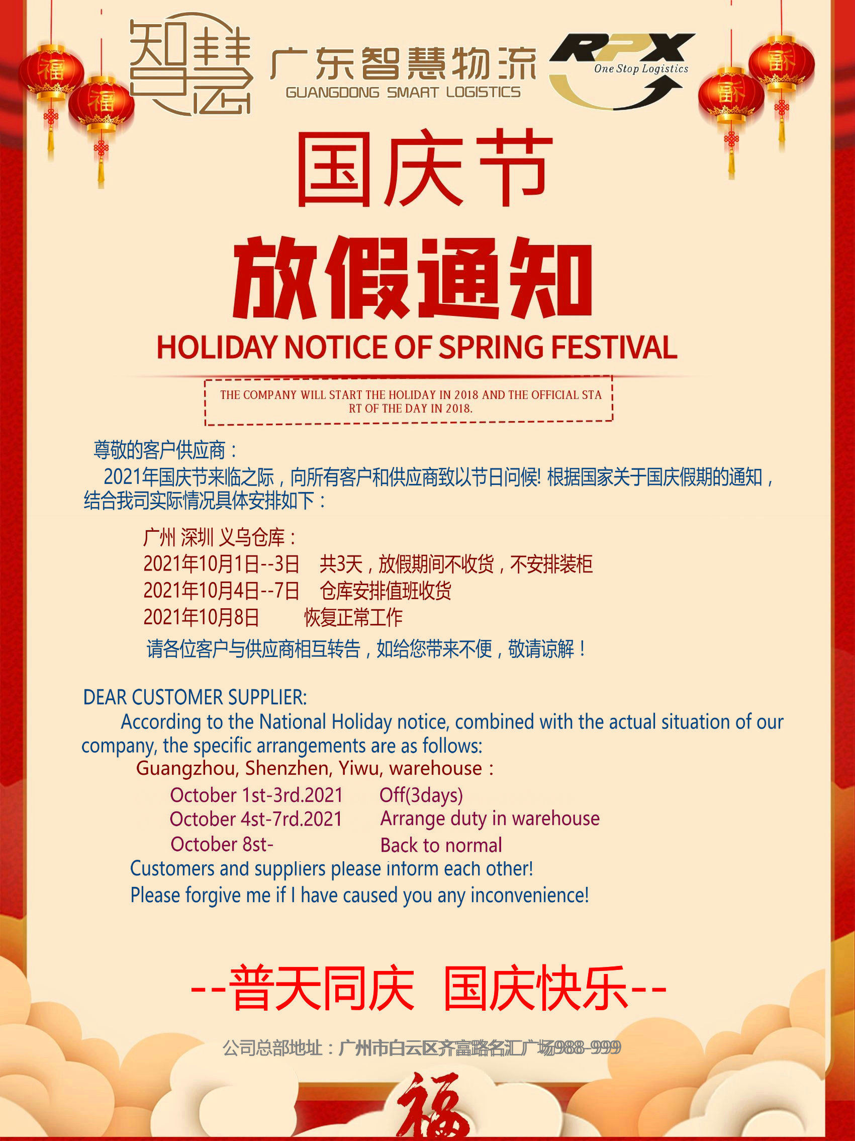 廣東萬泰昌國際物流有限公司國(guó)慶節,放(fàng)假安排。