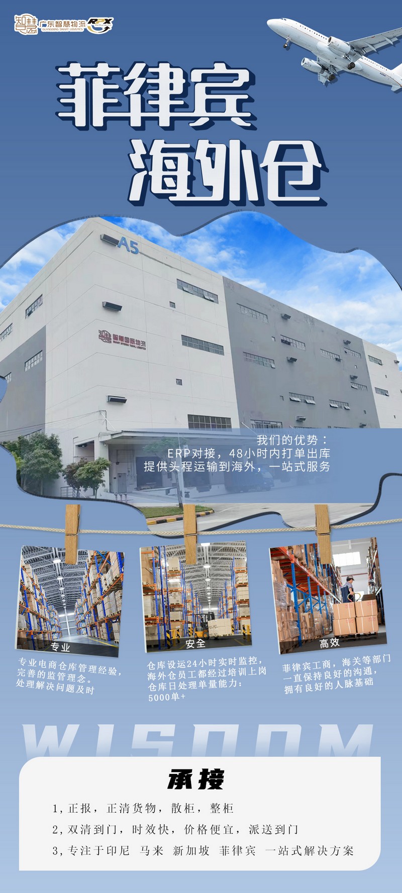 廣東智慧國(guó)際物流專注于菲律賓海外倉、菲律賓海外倉一件(jiàn)代發、菲律賓電商發貨、海外倉一件(jiàn)代發一站(zhàn)式的海外倉服務。菲律賓的海外倉,主要是針對菲律賓本土(tǔ)電商客戶,爲客戶提供倉儲、配送、物流等服務,以減少客戶在倉庫、物流和物流運輸中的各種麻煩和煩惱。